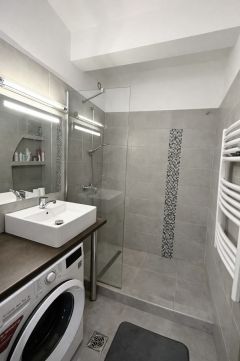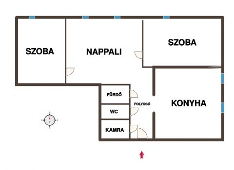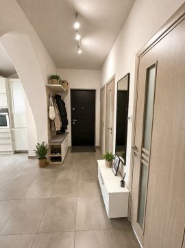 A lakás kialakítása praktikus és otthonos, a terek jól kihasználtak, világosak és élhetőek. A nappali mellett két külön nyíló szoba került kialakításra, így akár családok számára is ideális választás lehet. Az konyha tágasabbá lett alakítva. A fürdőszoba modern, walk-in zuhanyzóval felszerelt, a WC külön helyiségben található.