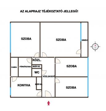 Az ingatlan elrendezése igazán praktikus: két félszoba és két egész szoba, két közlekedő, egy fürdőszoba, külön WC, erkély valamint egy tágas konyha és kamra található benne. A bejárati ajtó biztonsági ajtóval van felszerelve, ami növeli a lakók biztonságérzetét. A közlekedőben egy 3,5 kW-os hűtő-fűtő klíma gondoskodik a megfelelő hőmérsékletről az év minden szakában.