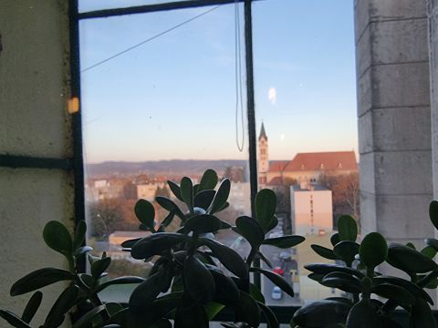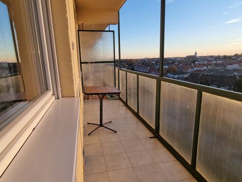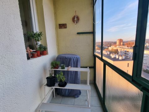 Az ingatlan egy 9 szintes tégla épület 7. emeletén található, ahol a kiemelkedő panorámát a város felé néző nagy erkély biztosítja. A modern és fiatalos belső tér trendi burkolatokkal kápráztatja el az új tulajdonost, míg a távfűtés egyedi mérővel gondoskodik a kedvező rezsiköltségekről. Az újszerű állapotú klíma garantálja a megfelelő hőmérsékletet a nyári meleg napokon. Ablakai dupla üvegezésű műanyagból készültek, redőnyökkel, valamint a hálóban rolóval felszereltek.