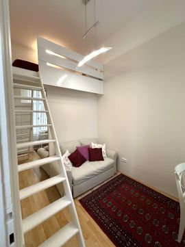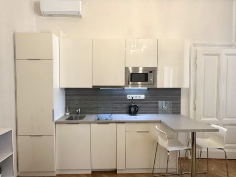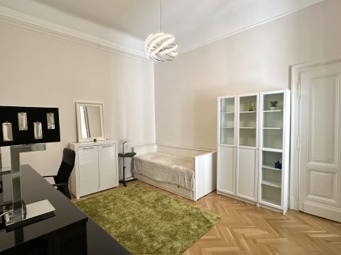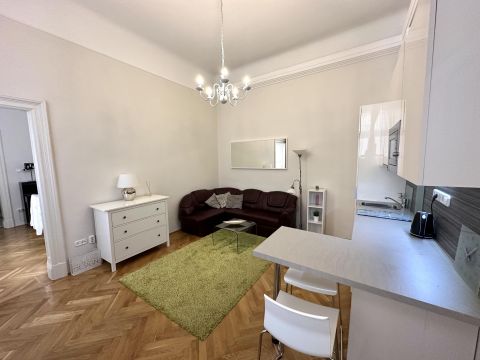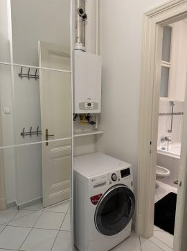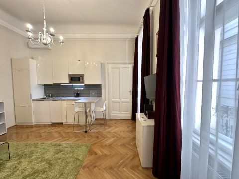 V. kerületi Duna-part szomszédságában, a Régi posta utcában hosszútávra kiadó egy csendes, udvari nézetű, felújított, gépesített - bútorozott, amerikai konyhás nappali + két hálószobás, két fürdőszobás, cirkó fűtéses (kondenzációs kazán), klimatizált lakás egy szép állapotú, liftes társasház 2. emeletén.