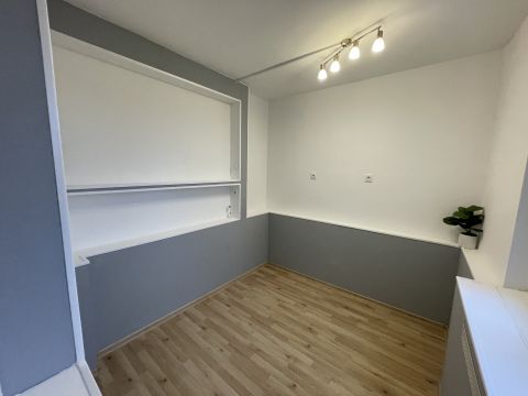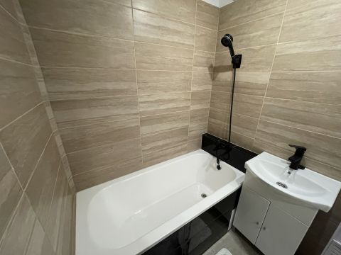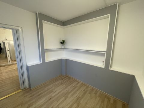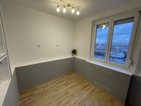 Budapest XIX. kerületében, Kispesten, a Dobó Katica utcában eladó egy 37 m²-es, 1+1 fél szobás, frissen felújított panel lakás egy rendezett, liftes társasház 9. emeletén.