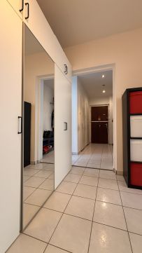A lakás parkosított, fás környezetben helyezkedik el, közvetlen közelben pihenőpark és gyermekjátszótér található.