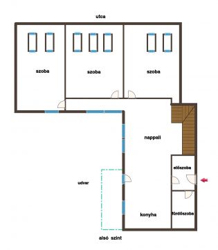 - az alsó szinten amerikai konyhás nappali+ 3 különnyíló hálószoba kapott helyet