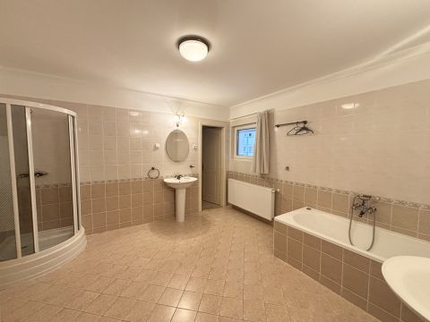 - egy extra nagyságú ( 12.5 nm-es ), ablakos fürdőszobája van, amiben egy sarokkád, zuhanyzó és egy toalett, is található, ráadásul innen egy külön nyílló 6,5 nm-es szintén ablakos háztartási helyiség is helyett kapott, emellett még egy szeparált külön wc-vel is rendelkezik