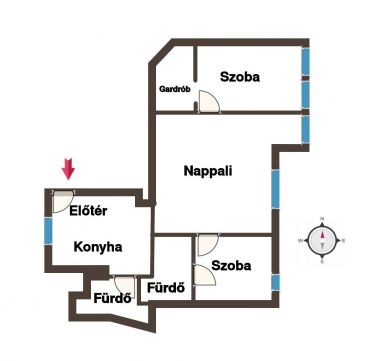 2 hálószoba (egyik saját fürdővel, másik gardróbbal)