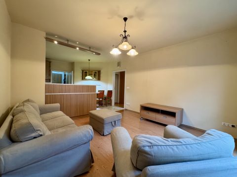 A lakás mérete 67 m2. A nappali (15,4 nm) és a két hálószoba (11,6 nm és 10,02 nm) a Gát utcára néz, a konyha gépesített, házközponti (egyedei méréssel ellátott) fűtésű. A lakás folyamatosan karbantartott.