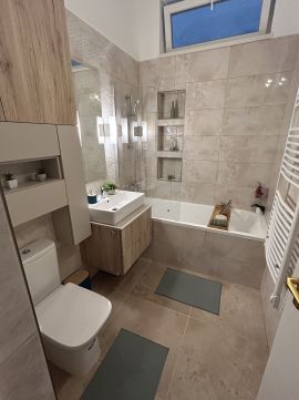 Felszereltség: VADONATÚJ konyhagépek (mosogatógép is!), hűtő-fűtő klíma minden szobában, redőnnyel és szúnyoghálóval felszerelt nyílászárók.