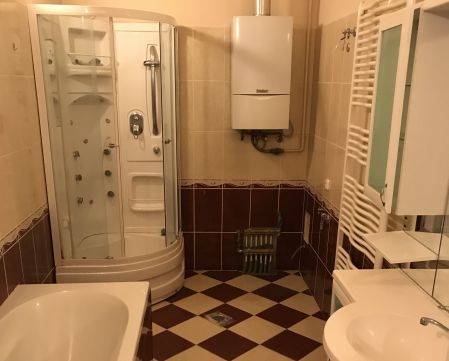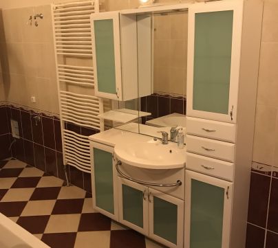 Az eredeti 2,5 szobás elrendezés helyett ma két nagyvonalú, világos szoba vár nem szűk kompromisszumok, hanem valódi élettér. A fürdőszoba kifejezetten tágas, külön WC-vel, a konyha és étkező egy légtérben kapott helyet, így a mindennapok és a vendégfogadás is kényelmesen megoldható.