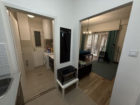 Az ingatlan jó állapotú, bútorozott, 4 nm-es erkéllyel rendelkezik, ami a ház belső, zöld udvarára néz és a magasföldszinten helyezkedik el.