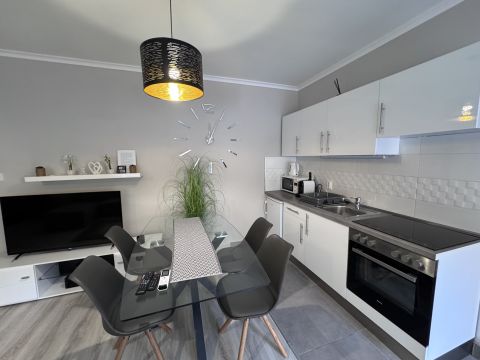 A lakás teljes bútorzattal és felszereléssel kerül átadásra: a TV, bútorok, háztartási eszközök és minden berendezési tárgy a vételár részét képezi, így az ingatlan akár azonnal költözhető vagy kiadható.