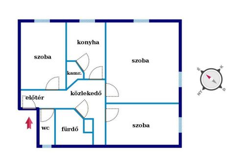 A helyiségek megkímélt és szép állapotban találhatóak, a konyha modern és kiegészül egy kis kamrával, a szobák mérete tágas és kényelmes, akár gardrób is leválasztható méretüket tekintve.