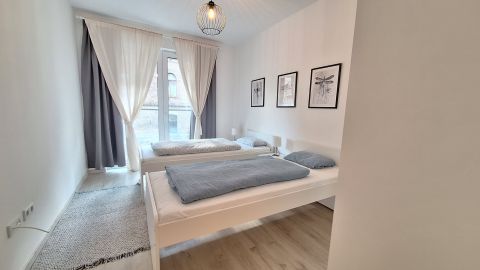 Az ingatlan remek elosztással rendelkezik, 68 m2-es, D-i tájolású, nappali-konyha-étkező + 2 kényelmes hálószoba alkotják a helységeit, modern letisztult új bútorokkal.
