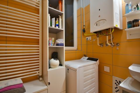 A lakás teljes körű felújításon esett át, a víz-, villany- és gázvezetékek korszerűsítettek. A fűtést engedélyezett gázcirkó biztosítja, a gázátalány havi 14.000 Ft. A nyári komfortot inverteres klímaberendezés segíti. A műanyag nyílászárók jó hő- és hangszigetelést biztosítanak, a kisebb szoba redőnnyel felszerelt. A beépített bútorok a vételár részét képezik.