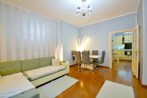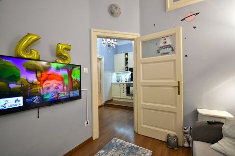 Az ingatlan nettó közel 50 m² lakóterű, jól tagolt elrendezésű. A tágas, több mint 24 m²-es nappali külön hálószobával egészül ki, emellett önálló konyha, külön fürdőszoba és külön WC szolgálja a kényelmet. A lakás belmagassága meghaladja a 3 métert, ami világos, polgári hangulatot biztosít. Az ablakok a társasház zöld belső udvarára néznek, így a lakás kifejezetten csendes.