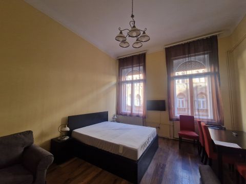 Budapest.VII.kerületében, a Liszt Ferenc tér közelében, a Kertész utcában kínálunk kiadásra 45 m2-es, egyszobás lakást teljeskörűen bútorozva, gépesítve. A lakás polgári ház második emeletén található. A tágas előszobában sok tárolóhely, gardrób lett kialakítva . A konyha udvari nézetű , gépesített, kis étkezővel felszerelt. Az utcai nézetű nappali étkezőasztallal, kanapéval, ággyal, fotelekkel szolgálja a kényelmet, valamint TV-vel is felszerelt.A fűtés gáz cirkó.Azonnal költözhető , hívjon még ma.