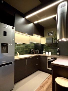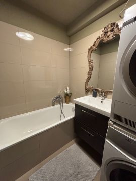 A lakás teljesen gépesített. A felszereltség része: mosógép, szárítógép, beépített mikrohullámú sütő, elektromos sütő, főzőlap és mosogatógép.