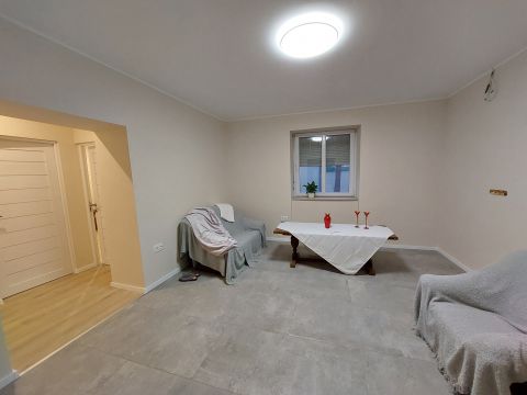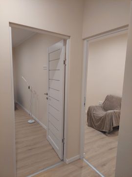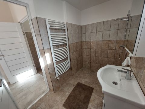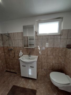 A külső, belső falak hálózása, vakolása, glettelése, festése, a mennyezet szigetelése megoldott. Új burkolatok ~ szobákban lamináltpadló, a többi helyiségben járólap készült.