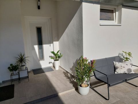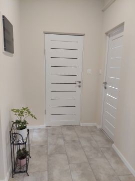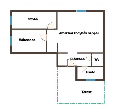 A lakás áll ~ 2 szoba, amerikai konyhás nappali, zuhanyzós fürdőszoba wv-vel, háztartási helyiség második wc-vel, előszoba, terasz helyiségekből.