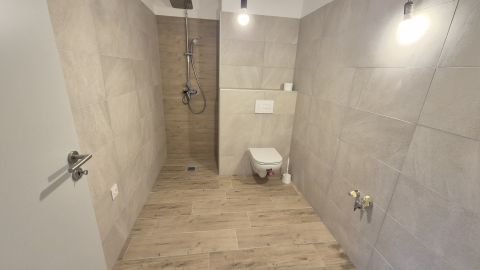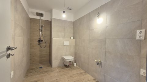 A lakásban beépített konyhabútor, gépeivel és a fürdőszobai szaniterek felszerlése még folyamatban van, de azzal együtt kiadó.