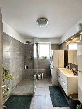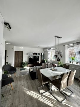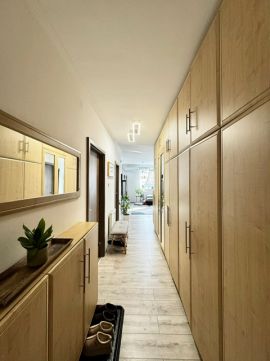 A lakás 2022-ben teljes körű belső felújításon esett át, amely magában foglalja a belső nyílászárók cseréjét, a fürdőszoba felújítását, a burkolatok cseréjét, valamint az új konyhabútor beépítését. A konyhában beépített gépek találhatók. A nappali bútorzata és az előszobai beépített szekrény a vételár részét képezi.
