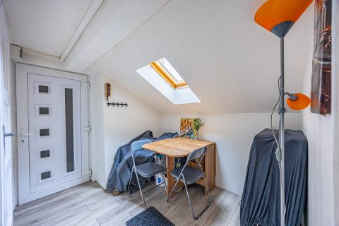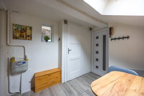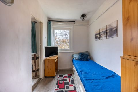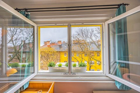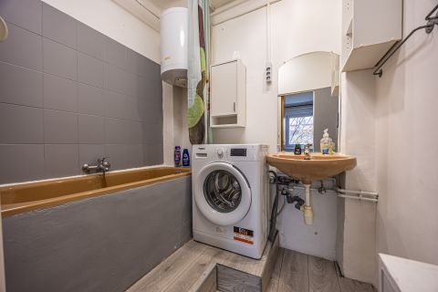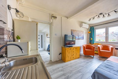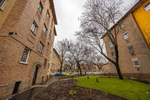 Az elmúlt években több felújításon átesett (új nyílászárók és konyhabútor, villanyszerelés, hűtő-fűtő klíma és festés) lakás tulajdoni lap szerint 28, valóságban 30 négyzetméteres. 4. emeleti, nagy felületű keleti tájolású ablakai vannak, ezért rendkívül világos. A nappali és hálószobán túl különnyíló WC-vel, kádas fürdőszobával és egy jól használható, tetőablakos, meglepően nagy előszobával rendelkezik. A ház az 1940-es években épült. Jól megközelíthető pincéjében egy száraz, 3 nm-es tároló is tartozik a lakáshoz. Az ablakok a házak közötti fák lombjaira, zöld udvarra nyílnak. Minden egyedi mérőórás, a lakás még külső szigetelést is kapott.