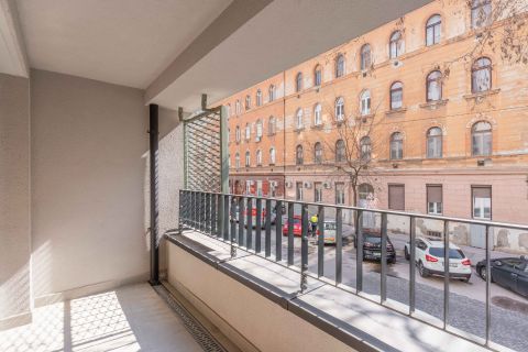 Elosztás: klimatizált, amerikai konyhás nappali + tágas hálószoba + külön fürdő + wc + előszoba + 5 nm-es erkély.