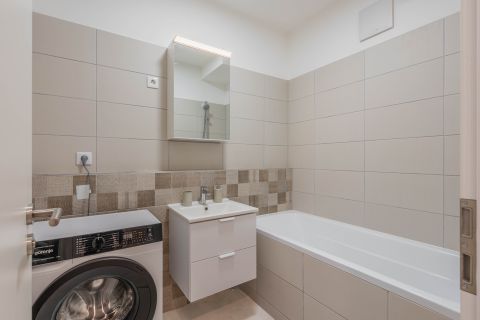 Felszereltség: Bútorozott, gépesített (hűtő, indukciós főzőlap, sütő, mikró, mosogatógép )