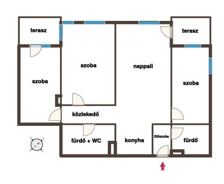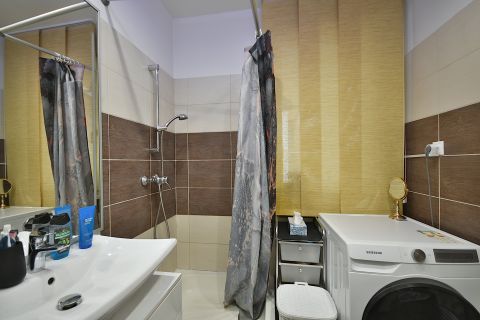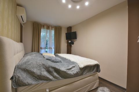 A 90 m²-es lakásban egy tágas nappali és három nagy méretű hálószoba található, így kényelmes otthont biztosít akár nagyobb család számára is. Az ingatlanban két fürdőszoba került kialakításra, amelyek a mindennapi élet kényelmét szolgálják. A lakás különlegessége a két, egyenként körülbelül 5 m²-es fedett terasz, amelyek közvetlen kijáratot biztosítanak a kizárólagos használatú, 89 m²-es saját kertbe. A kert körbekerített, automata öntözőrendszerrel ellátott, így valódi zöld oázisként szolgál a mindennapokban.