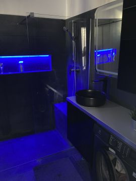 * Fürdőszoba zuhanyzóval, WiFi-hozzáféréssel rendelkező Ariston bojler, padlófűtés a fürdőszobában és WC-ben