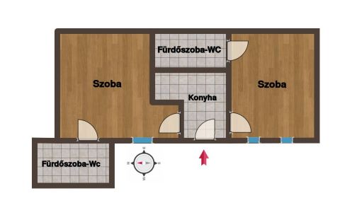 A lakás dupla komfortos, központi bejárattal rendelkező közös konyhából két teljesen különálló lakrész nyílik, mindkettő saját fürdőszobával. Ez az elrendezés ideális több bérlős hasznosításhoz, illetve lehetőséget ad arra is, hogy az egyik lakrész saját használatban maradjon, míg a másik bérbeadásból folyamatos bevételt termeljen.