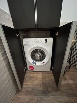 A lakás elosztása ideális: kényelmes nappali és konyha egy térben, világos és tágas hálószoba fürdőszoba kapcsolattal, kis szoba ideális egy személynek vagy dolgozó/ vendégszobának.