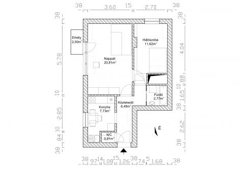 * 50 m² lakótér + 2 m² terasz