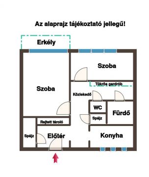 59 m²-es, 2 szobás- erkélyes ingatlan praktikus elosztásának köszönhetően kényelmes életteret biztosít.