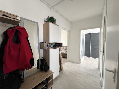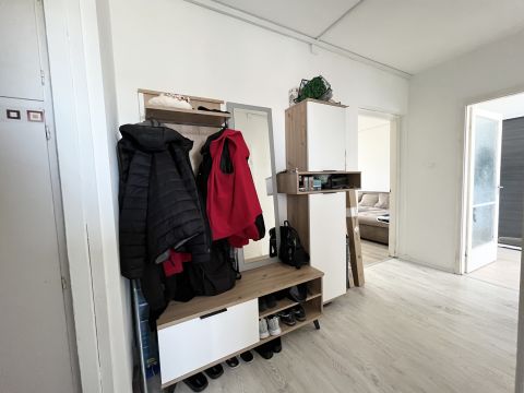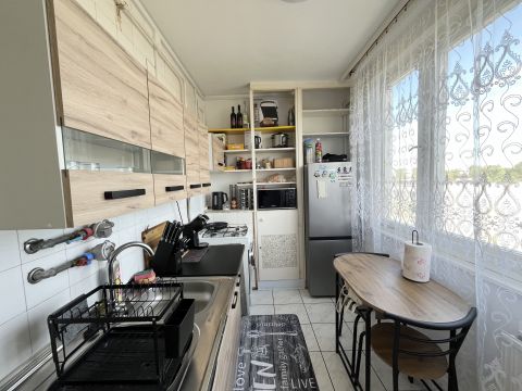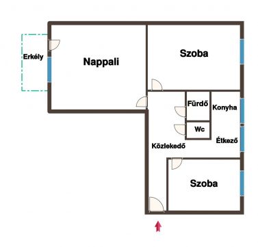 Az ingatlan elosztása: Tágas nappali erkéllyel, Konyha étkező, 2 különnyíló hálószoba, Fürdőszoba, külön Wc, közlekedő, előszoba - beépített szekrényekkel.