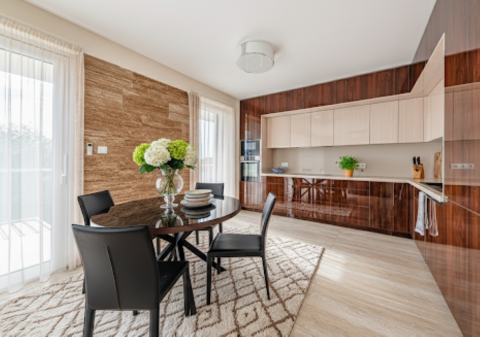 Az amerikai nappali + 3 háló + 2 fürdőből álló ingatlan lenyűgöző panorámával, 69 nm-es terasszal (harmadolva beszámítva) igazán vonzó lehet családok vagy párok számára. Fentieken kívül tágas teremgarázzsal és medencével, grill-terasszal is rendelkezik a ház.