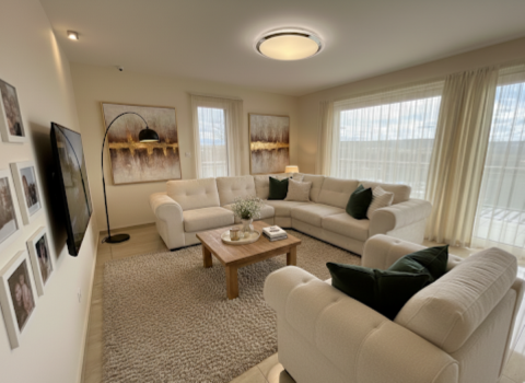 A 3 lakásos szigetelt társasház 1. emeletén található ingatlan 2023-ben került átadásra, de még senki nem lakta.