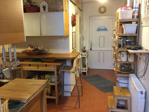 A ház maga távfűtéses, azonban ez a lakás levált és egyedi gáz fűtéses. Netto 60 nm(ez szerepel a tulajdoni lapon is), a valóság azonban 73 nm tekintettel a tetőtéri 1.9 m alatti területekre. Az épületben a tetőszerkezet nemrég lett kicserélve. A ház anyagilag jól áll, a belső udvarban vannak gépkocsi beállók, de ezek várólistásak.