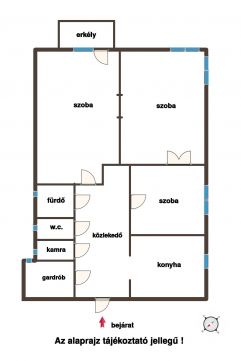 Az ingatlan első emeleti, három, parkettás szobával, ablakos konyhával, kamrával, nagy gardróbbal rendelkezik.