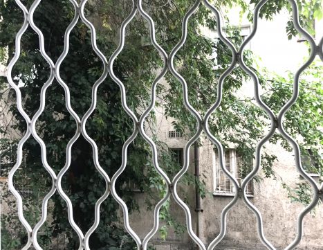 A hat lakásos társasház körbekerített, lépcsőháza, kis kertje gondozott.