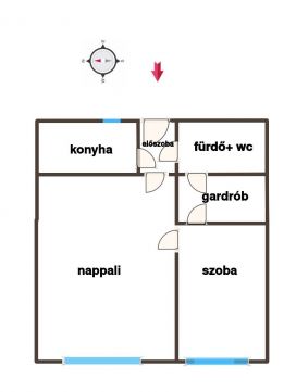 Alapterület: 46 nm Másfél szoba + külön gardróbszoba.