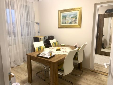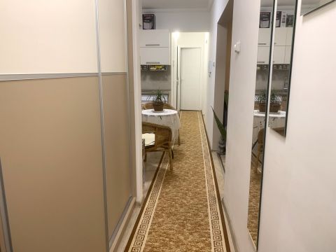 A lakás a 10 emeletes épület 8. szintjén található, ahonnan szép kilátás nyílik, és a magasabb emeletnek köszönhetően csendes, nyugodt.