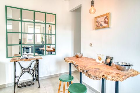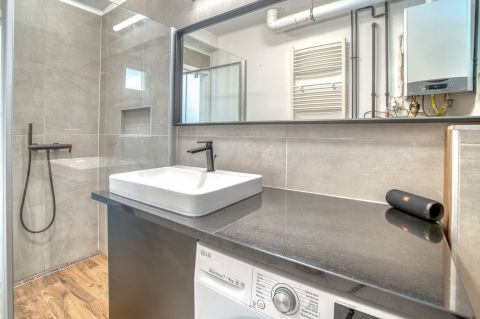 A lakás 2018-ban teljes körű felújításon esett át, amely során a belső terek modern, letisztult kialakítást kaptak. A jelenlegi kialakítás loft hangulatú, amely tágas térérzetet ad, ugyanakkor igény esetén a hálószoba könnyedén leválasztható, így nappali + hálós elrendezés is kialakítható.