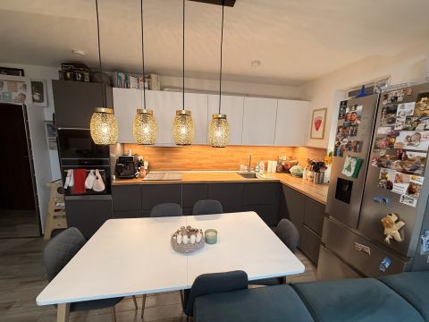 Eladó Kápolnásnyéken 2021-ben épült,társasházban, tégla szerkezetű, elegáns otthon, amerikai konyhás nappalival és 130 m2-es, saját kerttel rendelkező ingatlan, mely a Velencei-tó közelében található.