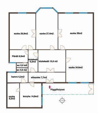 Különlegesen jó alaprajzi lehetőségekkel rendelkezik, így alkalmas akár több önálló lakás kialakítására is.