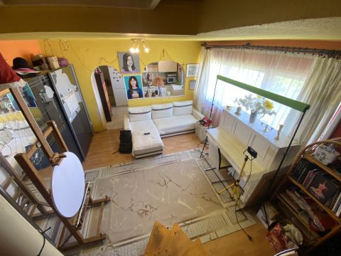 Az épület eredetileg négy emeletes panel társaházának bővítése 2004-ben történt. További két szintet építettek rá ytong falazattal, cserép fedéssel, külső és födém szigeteléssel, műanyag, szúnyoghálóval is ellátott nyílászárókkal. Ebben a részben került kialakításra ez a remek belső két szintes, korszerű otthon is.