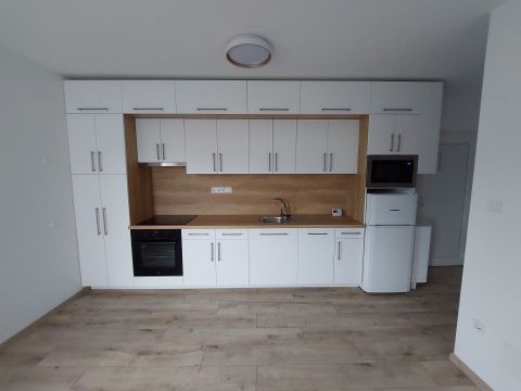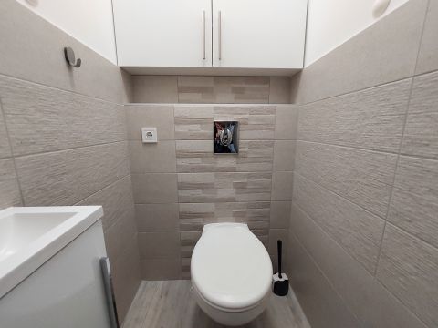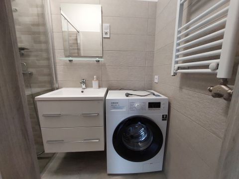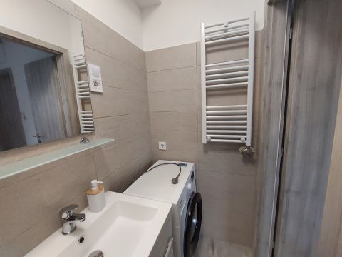 Az ingatlan egy 2024-ben épült modern, tégla építésű, szigetelt ház első emeletén található. A lakásban teljesen felszerelt, modern gépesített konyha van: mosogatógéppel, villanysütővel, indukciós főzőlappal és fagyasztós hűtővel, a zuhanyzós fürdőszobában pedig vadonatúj a mosógép.