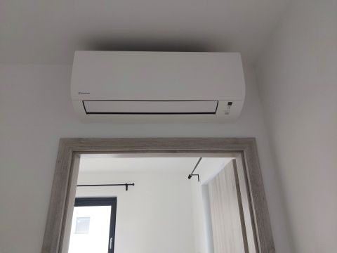 Az ablakok redőnnyel és szúnyoghálóval vannak ellátva. A nappaliban hűtő/fűtő klíma található. Fűtése modern padlófűtés, a meleg vizet gáz kombi cirkó biztosítja. A lakás fenntartása rendkívül kedvező. A lakáshoz a bekerített lakóparkban egy felszíni gépkocsibeálló is tartozik.