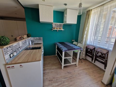 A lakás teljesen bútorozott, a berendezés IKEA termékekből áll.