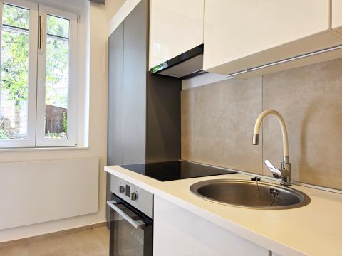 KIVÁLÓ BEFEKTETÉS!!! Pécs Egyetemvárosi részén, a Petőfi utcában eladó egy III/fsz-i, kiváló minőségben-teljeskörűen felújított, 33 nm-es, elektromos fűtéssel rendelkező, klímás, tégla garzon lakás, terasszal, KÖZÖS KERT HASZNÁLATTAL.