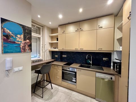 In one of the most sought-after parts of Újlipótváros, on the 4th floor of a well-maintained residential building with an elevator, this tastefully designed 2-room apartment with a large balcony is available for rent.
